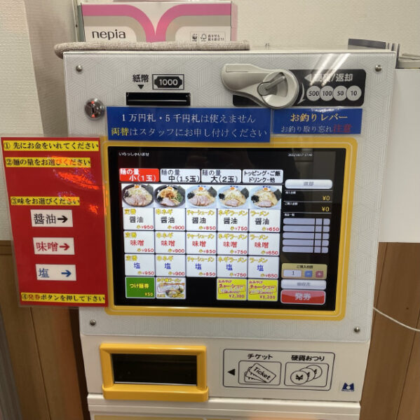 食券機で購入して注文