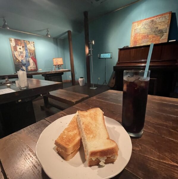 これが最高でキリッと濃く深いアイスコーヒー&サクッと美味しいホットサンドがセットでこの価格すよ。