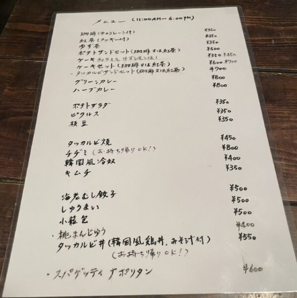 そして元焼肉屋さんということもありメニューも少し変わっていてチヂミやタッカルビ、キムチまで。