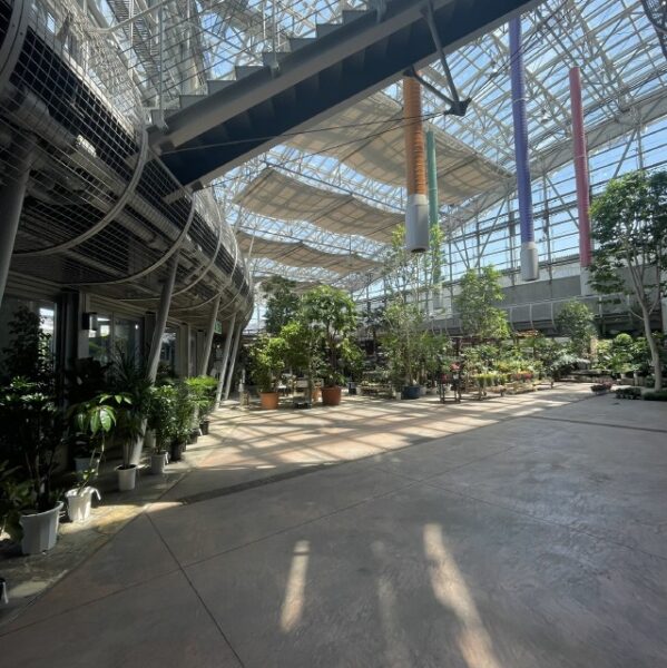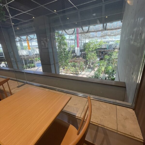 壁一面のガラス窓からは、植物アトリウムが一望できます