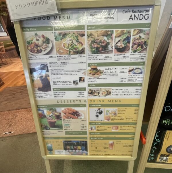 先日、道の駅川口あんぎょう(緑化センター樹里安)の建物内に新しくオープンしたカフェレストランANDG(アンジー)さんに行ってきました。