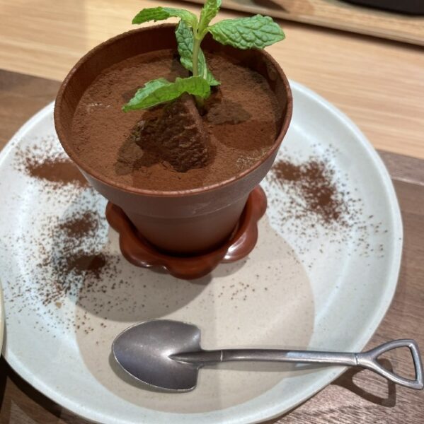 鉢植えティラミス、キューポラカレー、樹里安ガーデンシェフサラダ。