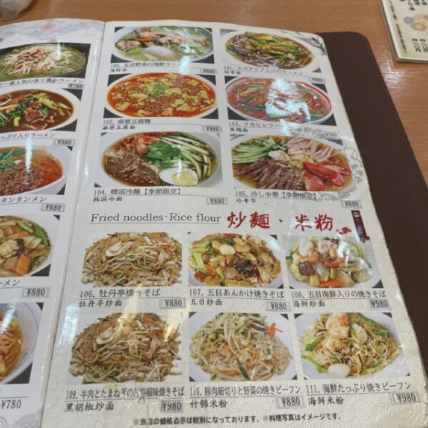 実際はご飯物→1.5人前、麺類→ちゃんと1人前でてきます。