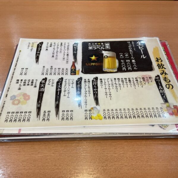 アルコールメニュー