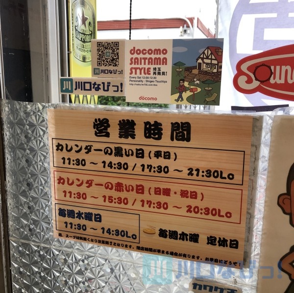 店主さんがお店の入口に川口なびっ!のステッカー貼ってくれました。