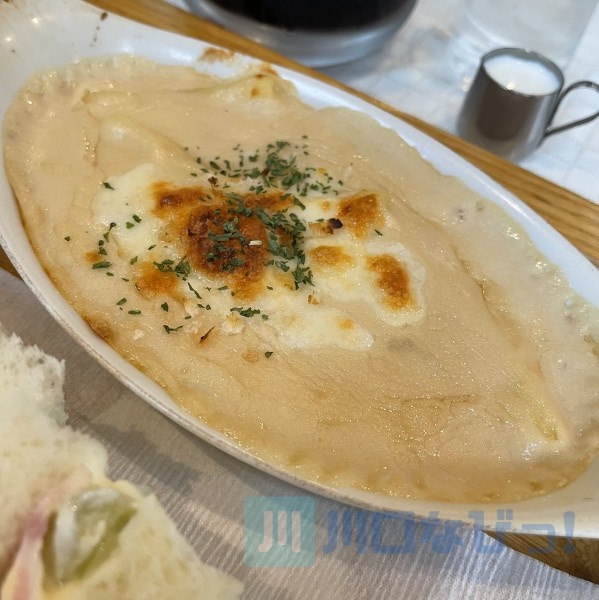 グラタンとサンドイッチの素晴らしいコンビネーション。
