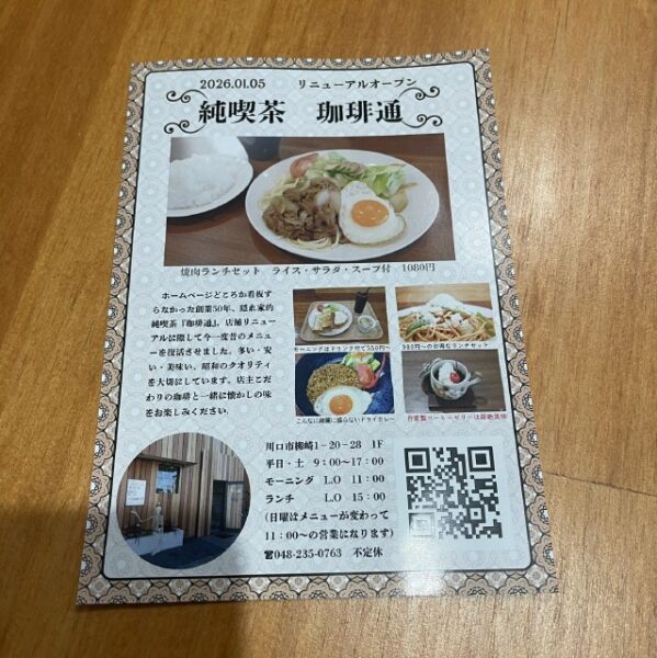住所:〒333-0861 埼玉県川口市柳崎1丁目20−28 ヨコタハイツ 1F(マッサージは2Fですが珈琲通内でも簡単な施術を受けれます)