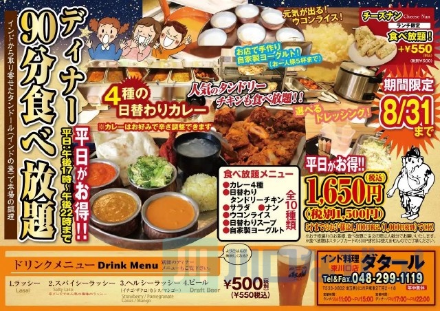先日、ダタール東川口店でインドカレー食べ放題を開催しているとの情報が。
