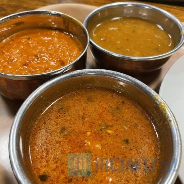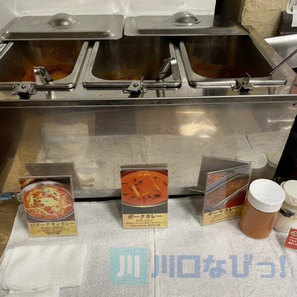 この日は、キーマカレー、バターチキンカレー、ポークカレー、ダルカレー(豆カレー)。