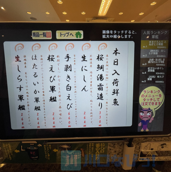 注文もそのままタブレットでできるのでスムーズだと思う一方で、昔のがってん承知~っが聞けないのは残念(もしかしたら口頭で何か頼むと言ってくれるのかな?