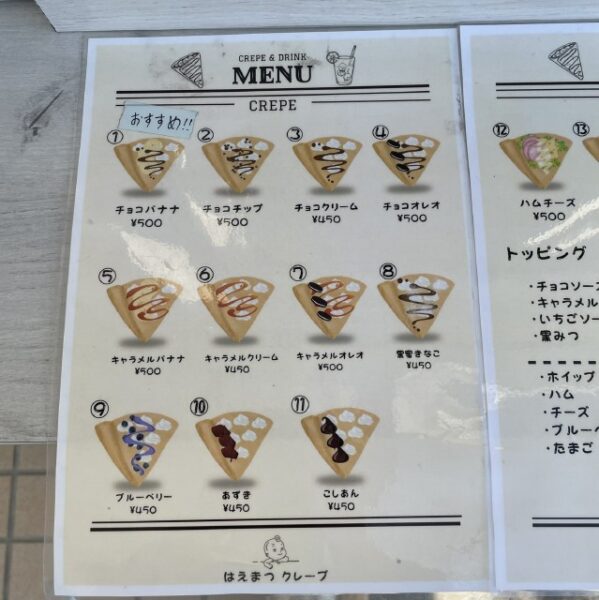 先日ですねぇ、最近新しくオープンしたっていうはえまつクレープさんに行ってきました〜。