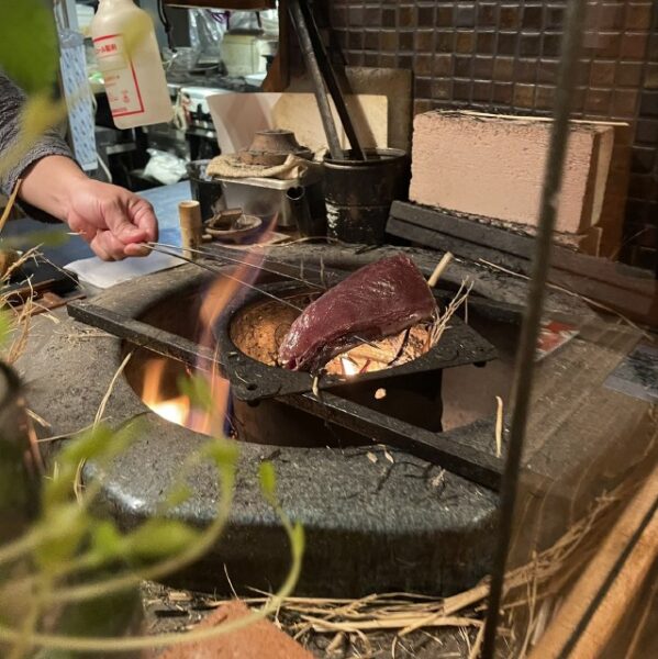 藁を釜戸に入れて目の前で鰹のタタキを炙ってくれます