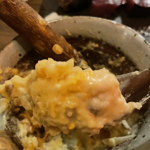 この料理の醍醐味は最後の仕上げを自分ですりこぎ持って完成させる所じゃい!