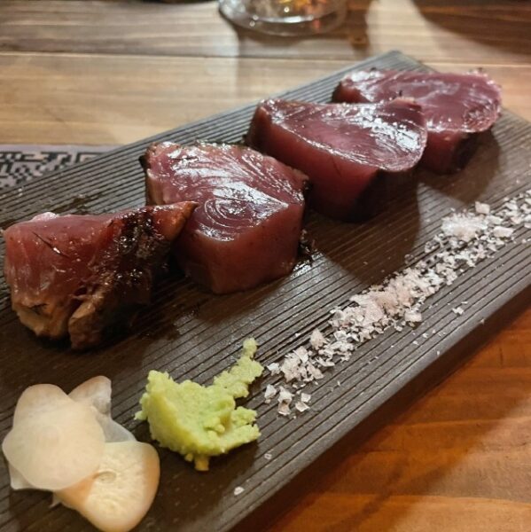 タディ店主「牡蠣も旬ですが、このモチガツオも今が旬で最高なんですよ!是非食べてってください!」シュボッ。
