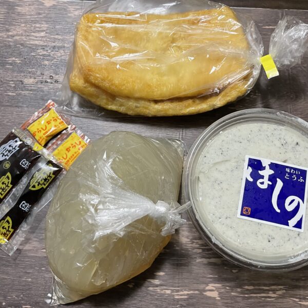 油揚げや厚揚げ、がんもなどの豆腐類、おからドーナツやところてんなど幅広く扱っています。