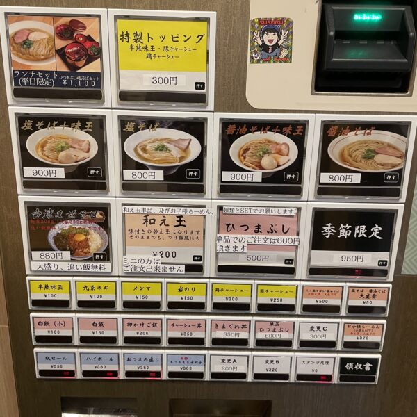 名古屋コーチンの塩そば、名古屋発祥の台湾まぜそば、名古屋名物のひつまぶしの3本柱で営業。