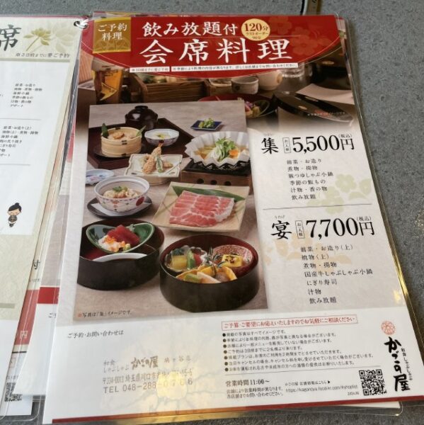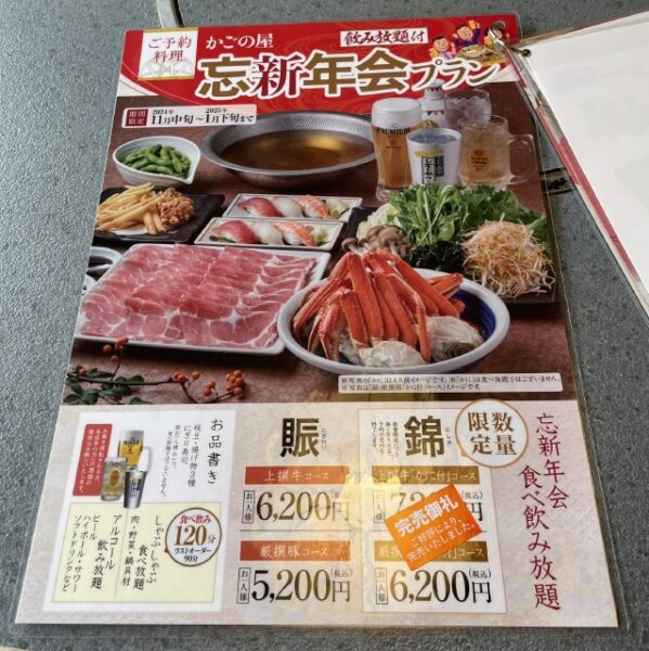 席についてメニューをみると会席コースや飲み放題なんかもあるんだね。