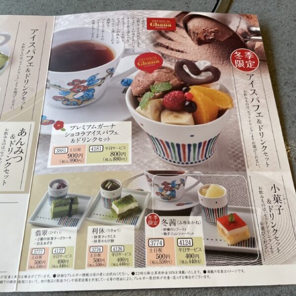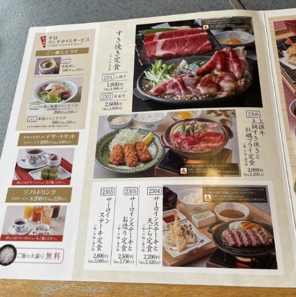 嫁さんにかっこつけて「何でも好きなのいいよ」って言っちゃったらさ「土鍋すき焼きと牡蠣フライのやつにしよっかな〜、あ!あと抹茶パフェ美味しそう♪」