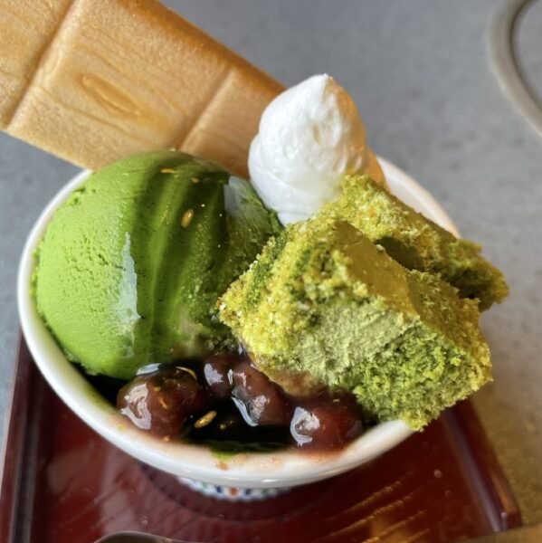 かごの屋の抹茶甘味は、茶処・宇治の老舗「京都宇治 森半」さんの抹茶を贅沢に使用した自慢の逸品