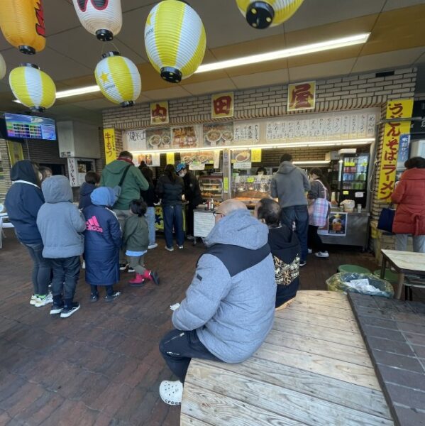 場内の売店はこの日は6店舗ほど開いており(閉まってるお店もあったような?)ほとんどのお店はテイクアウトメインですが、店内で飲食できるお店もありました。