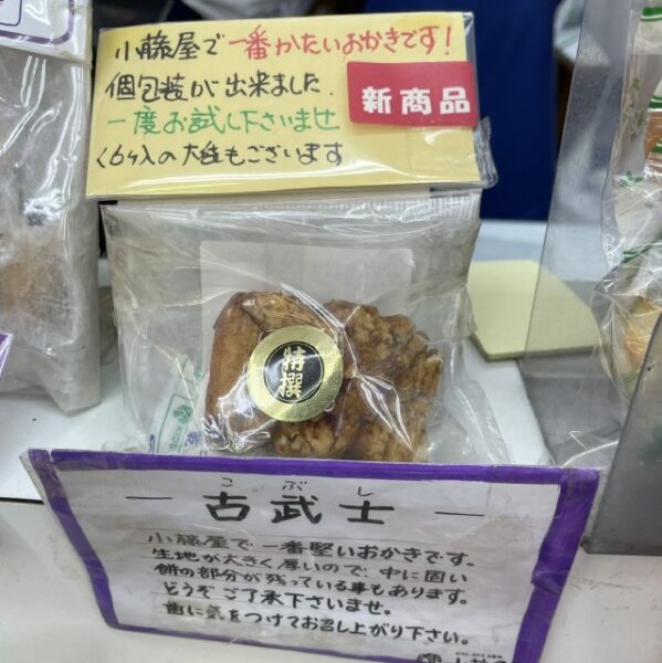 この日は小藤史上最強の堅さを誇るというおかき「古武士」もゲット、名前がちょーいかしてるじゃないですか。