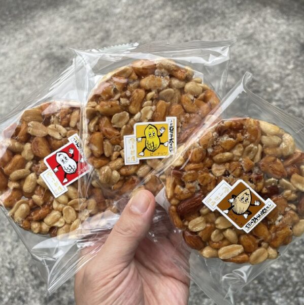 ピーナッツと柿の種を水あめで固めた人気のおかき