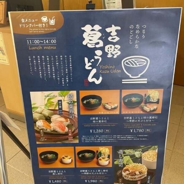 吉野葛うどんと柿の葉寿司 季節の天ぷら付き