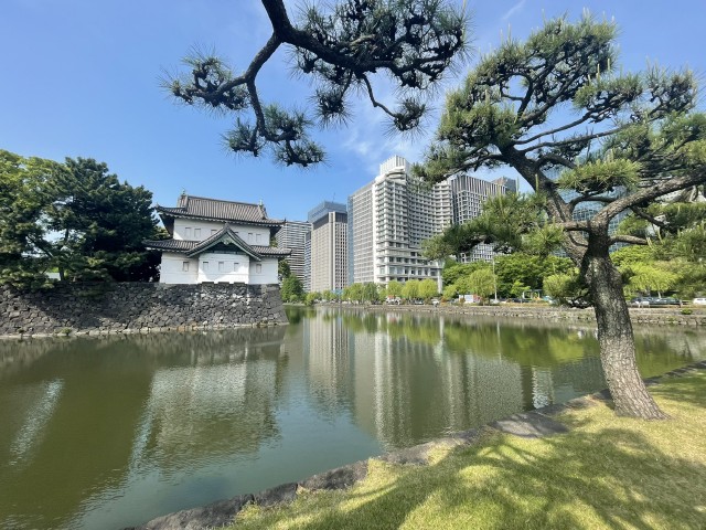 黒松の点在する大芝生広場と江戸城のたたずまいを残す濠、我が国を代表する公園として親しまれています