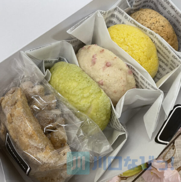 4種のメロンパンとメロンパンラスクが1つ入ってる見た目もキレイなセットです。