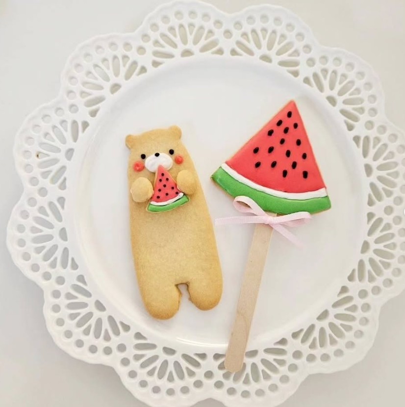 スイカを持った夏バージョンのうさぎちゃんクッキー