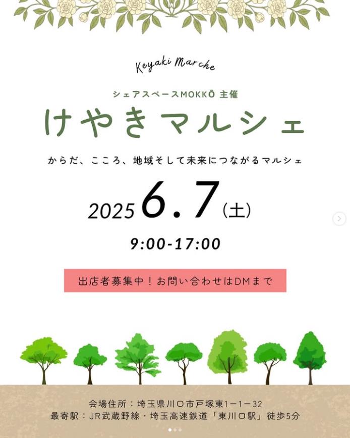 けやきマルシェというマルシェを6月7日土曜日に開催予定。