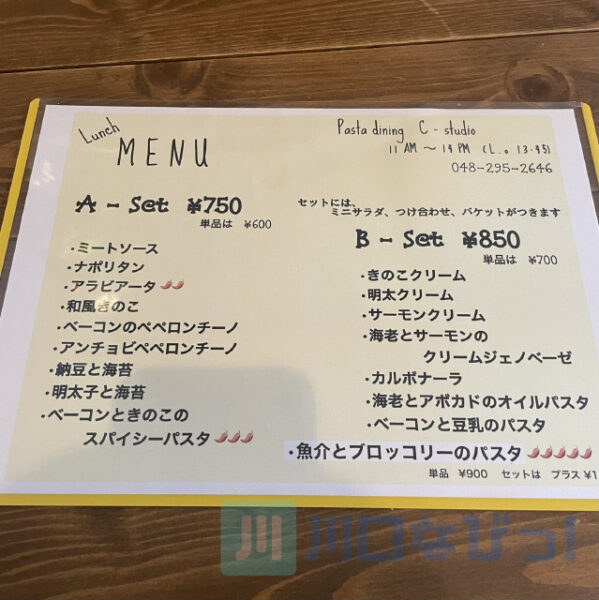 川口なびっ!内のPasta dining C-studioさんページヘ