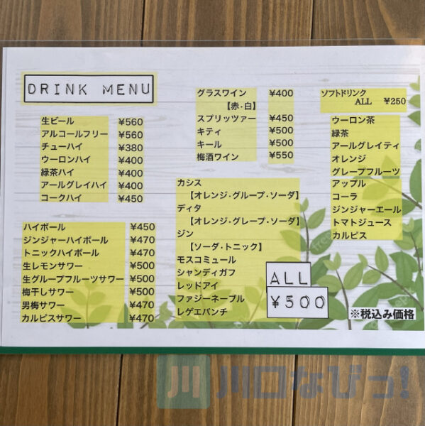 アルコール類からソフトドリンクまで種類豊富に取り揃えております