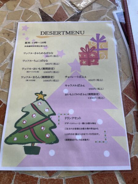 デザート、ドリンク付きのランチメニュー