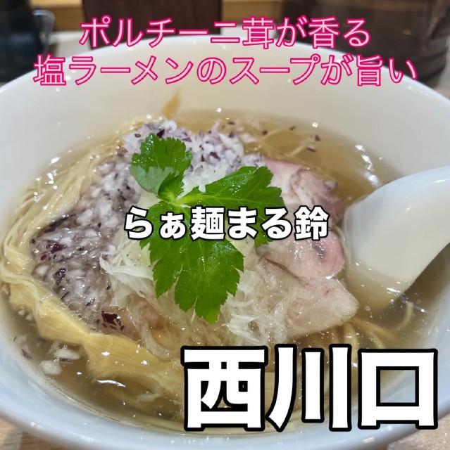 西川口西口から徒歩数分の所にあるらぁ麺まる鈴さんでポルチーニ茸薫る特製塩らぁめん食べたよ〜。