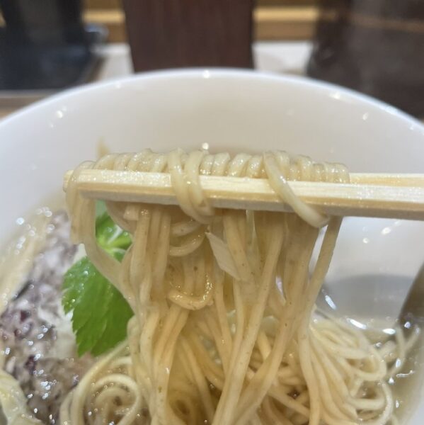 菅野製麺特注の全粒粉入り低加水麺を使用 、パツパツとした歯切れの良い食感が特徴です
