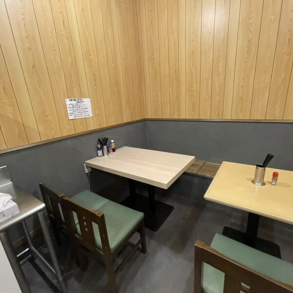 メニューは立食いそば風ですがテーブル席とカウンター席がありちゃんと座れます。