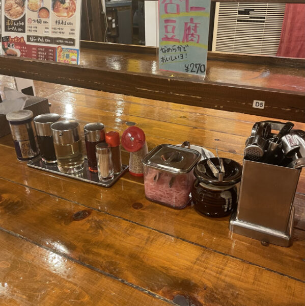卓上にはゴマ、ニンニク、紅生姜など