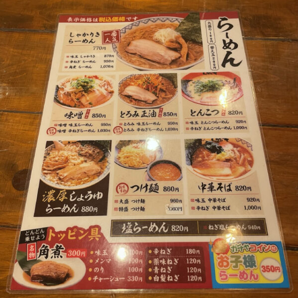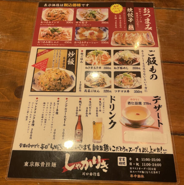 川口市安行にある東京豚骨拉麺の看板が目を引くしゃかりきらーめん川口店へ。