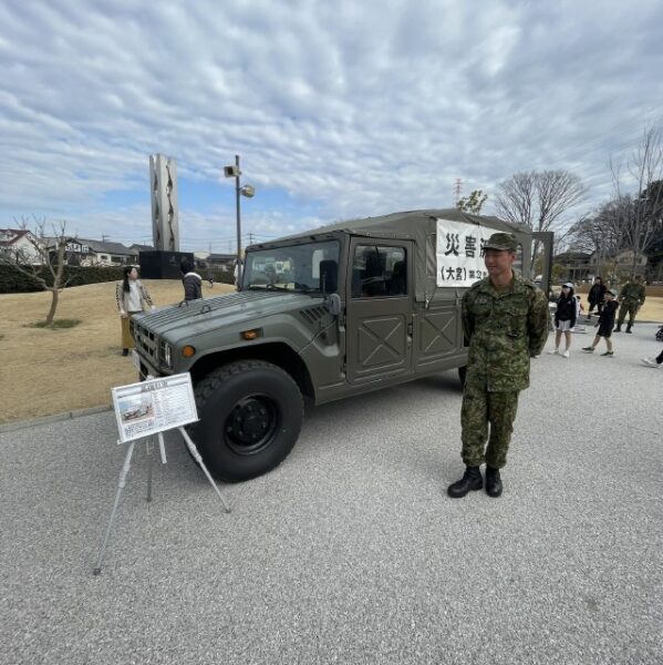 自衛隊・警察・消防等の働く車展示、防災体験・展示、キッチンカーなどが行われます