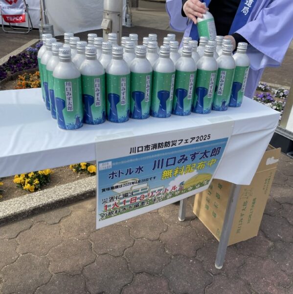 災害時の飲料水、5年持つボトル水「川口みず太郎」