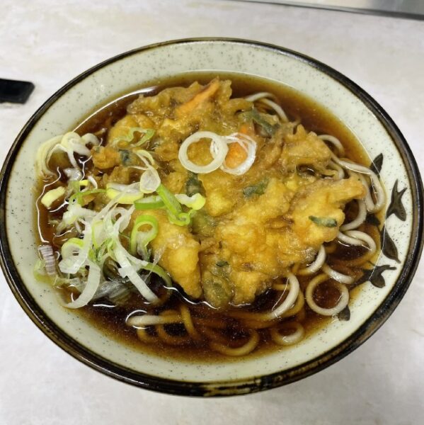 無駄ラリーを経たにも関わらず、秒速で出てくる天ぷらそば。