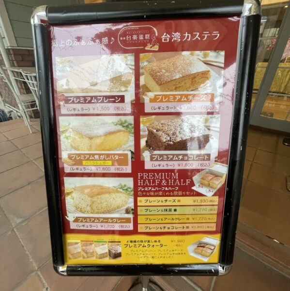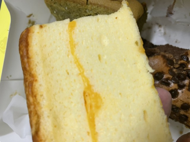 お店に見本で置いてあった台湾カステラは大きくてふんわりとした見た目だったけど、実際の品は三本の2/3位の高さで少し詰まっていました。