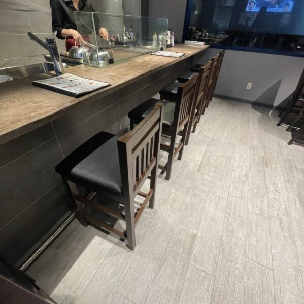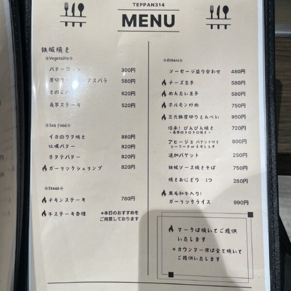 カウンター席も何席かあり、そちらは目の前で鉄板焼きを作ってもらうという感じになりますね。