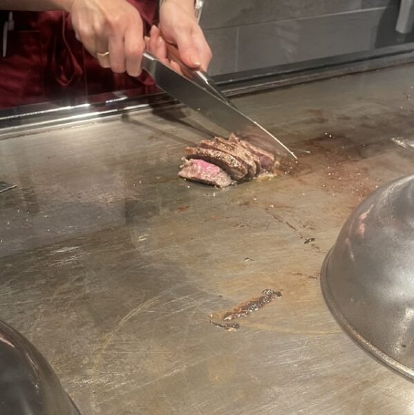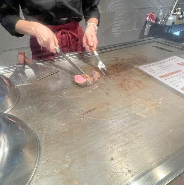 ※ちなみに運良く鉄板で分厚いヒレステーキを焼いてるシーンを撮影させてもらえたのでご賞味ください(メシテロ