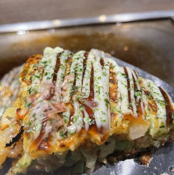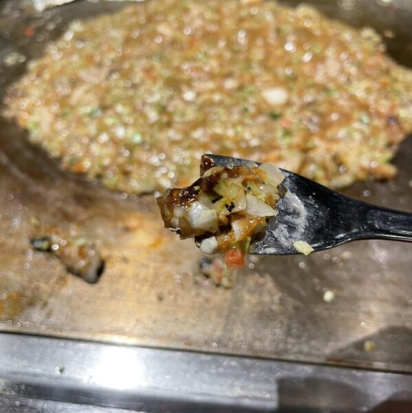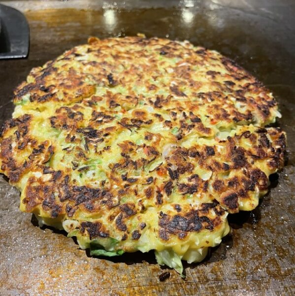お好み焼きをひっくり返すと期待感が倍、、、いや5倍!