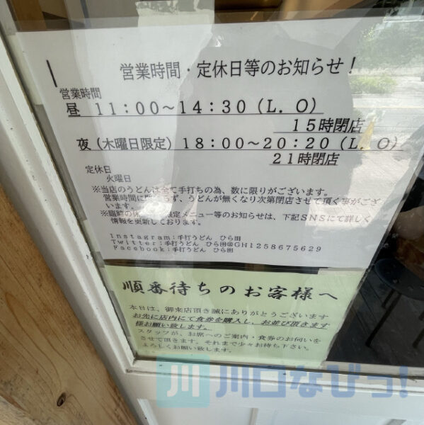 川口なびっ!内の手打ちうどん ひら田さんページヘ
