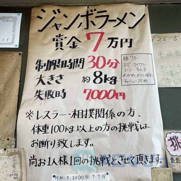 チャレンジメニューのジャンボラーメンも健在でした。