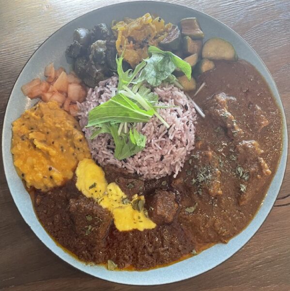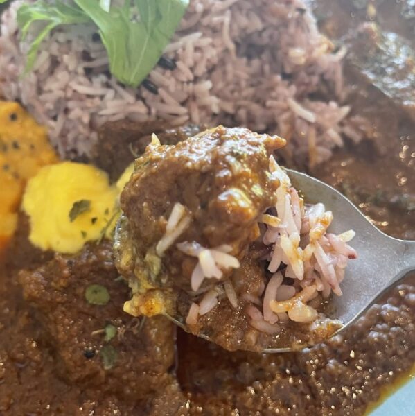 ポークビンダルーの豚肉がとろりと柔らかく後からスパイスが効いてきて美味すぎ!