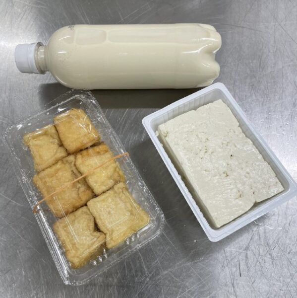 今回は木綿一丁と豆乳、揚げ出し豆腐にしました〜!